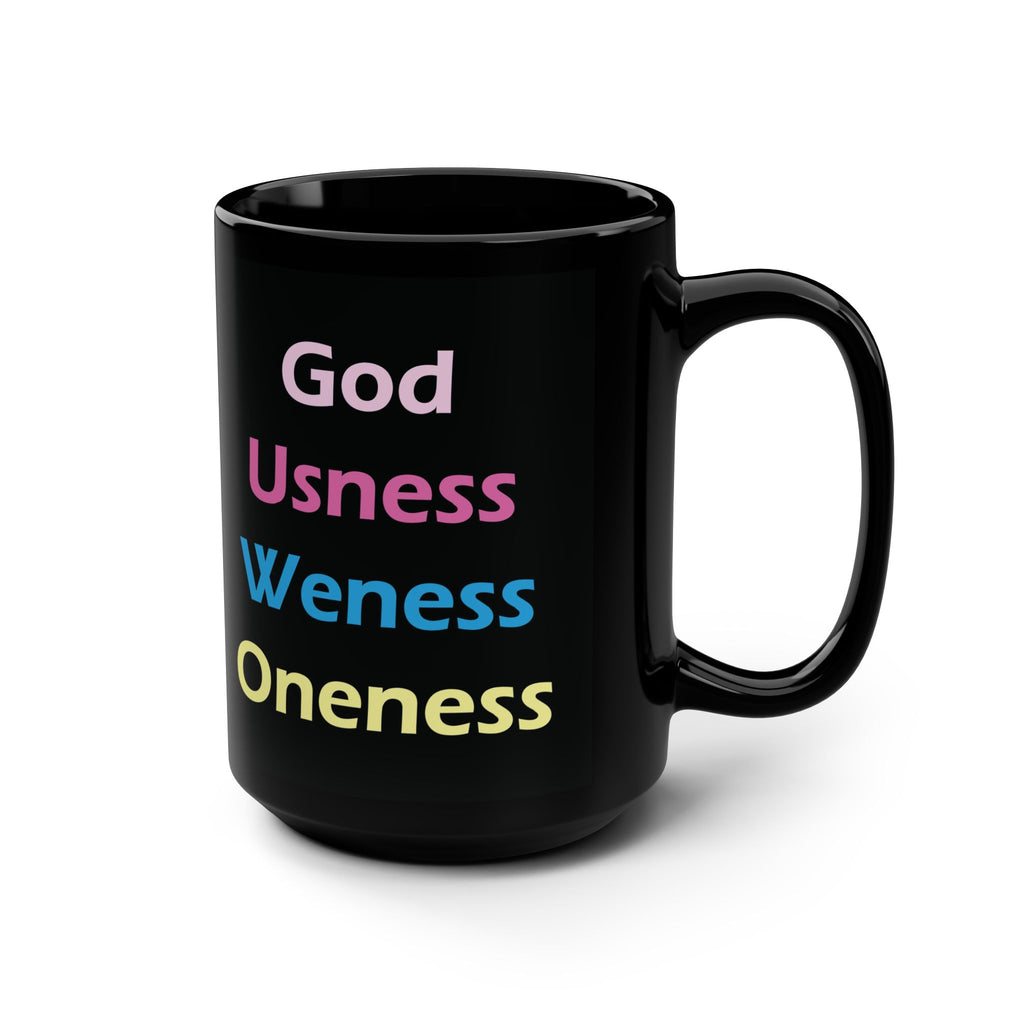 This isn’t just a coffee or tea mug This is a life affirmation, a reminder, an eternal truthful spiritual message from the soul. With the simple, powerful phrase; God, Usness, Weness, Oneness. © words and design