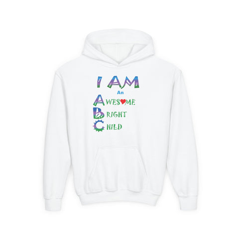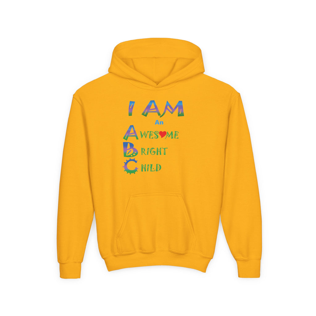 I AM an Awesome Bright Child Children's hooded sweatshirt. This is a YOUTH size there is a separate listing/next listing for ADULT SIZES. Help Empower your Children, help them have pride in themselves and know that they are loveable and valuable. This vibrantly colored Hoodie with the empowering phrase "I Am an Awesome Bright Child" © words and design is an excellent tool to help boost children's confidence in themselves. Because they know what their shirt says and they are who the shirt is referring to and others will see it and read it and positive energy surrounding the wearer will organically flow. This shirt is a stylish part of any outfit. It is a powerful affirmation that reminds children of their worth every time they wear it. The youth blend hooded sweatshirt is comfortable and durable and perfect for everyday use and a great choice for any season. It is made from ultra-soft, preshrunk fleece that feels wonderful against the skin. The garment is 50% cotton 50% polyester with reduced lint buildup. The front has a kangaroo pocket big enough for both hands. The neck is reinforced. It is a Regular fit and Runs true to size Personalization is available to include name of the child. For example "Martin is an Awesome Brilliant Child". (additional $3.00 charge will apply) check separate listing. Thank You for shopping. Enjoy!